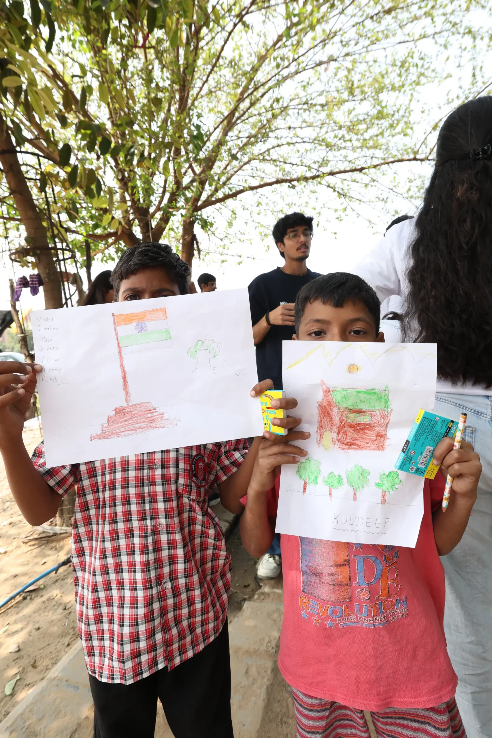 The first day centred on children, where guided art sessions and interactive activities created space for expression, collaboration, and exploration. These moments were not just about creating art, but about building confidence, encouraging participation, and fostering a sense of belonging. Alongside the sessions, 750 meal boxes and 500 stationery kits were distributed, supporting both immediate needs and continued learning.